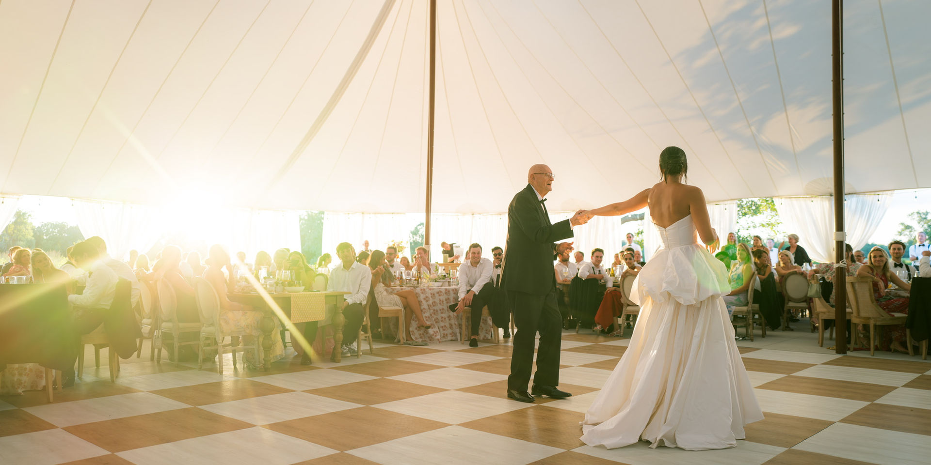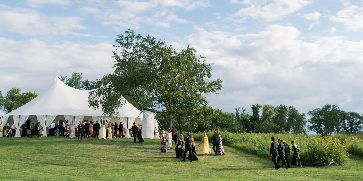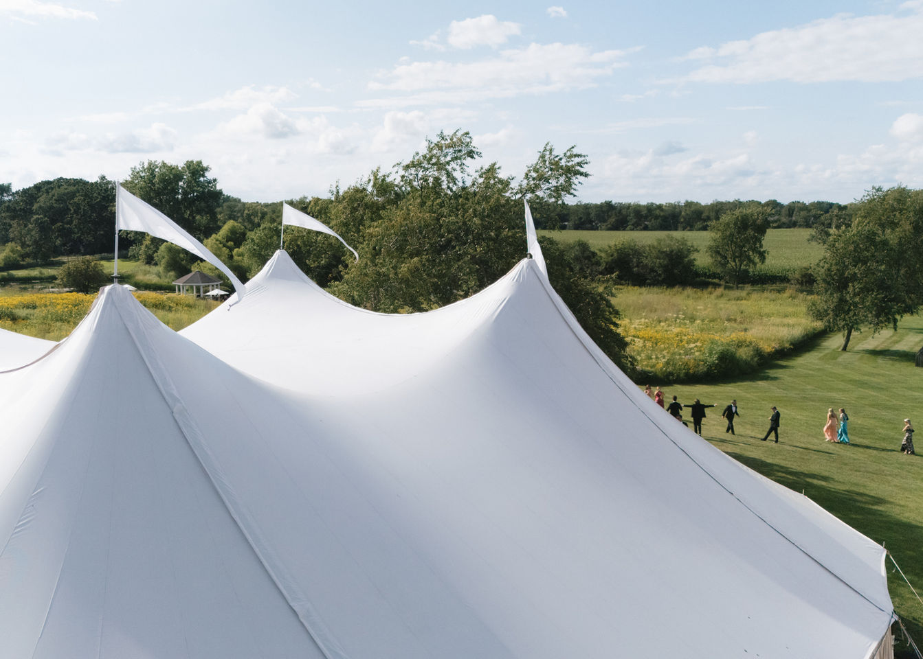 It is a massive (77' x 63') white sail cloth tent that can host 200 guests for a seated reception.